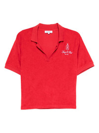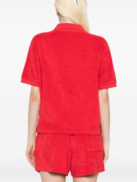 Vendome Terry polo top Highlights - Crimson red - Embroidered logo - V-neck - Short sleeves Imported Composition Cotton 100% SIZE & FIT Model measurements Height 5 ft 9 in(1.76 m) Bust/Chest 31.1 in(79 cm) Hips 35.03 in(89 cm) Waist 24.4 in(62 cm) FittingInformation Designed to be unstructured, offering a loose fit throughout Made from a midweight non-stretch fabric Washing instructions Machine Wash