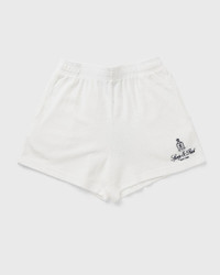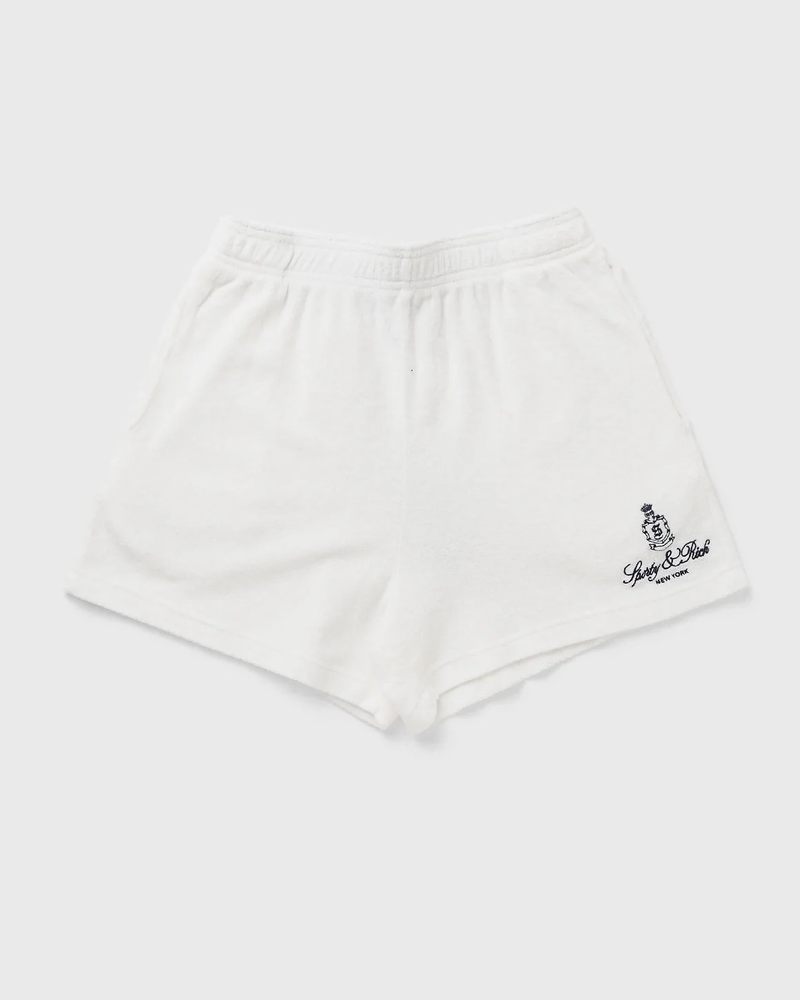The Vendome Terry Shorts from Sporty & Rich combine sporty, casual style with high-quality workmanship. Made from thick French terry, they offer a comfortable fit thanks to the elastic waistband with concealed drawstring. Two side pockets and a back pocket ensure functionality, while the subtle logo embroidery on the leg adds a brand accent. - Elastic waistband - Side pockets and back pocket - Logo embroidery Article Number: SH001602231WH01 Gender: Women Color: white Material: 100% Cotton