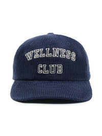 Wellness Club corduroy cap Highlights - Prussian blue/cream white - Cotton - Corduroy - Curved peak - Curved wide brim - Embroidered slogan - Embroidered logo to the side - Fabric-covered button at the crown - Slip-on style - Adjustable strap to the rear Imported Composition Cotton 100% SIZE & FIT Measurement BRIM 2.75 in(7 cm) CIRCUMFERENCE 22.04 in(56 cm)