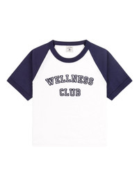 Wellness Club baseball-sleeve top Highlights - White - Navy blue raglan sleeves - Wellness club embroidery - Short sleeves - Crew neck - Cotton Imported Composition Cotton 100% Washing instructions Read Manufacturer Guidelines