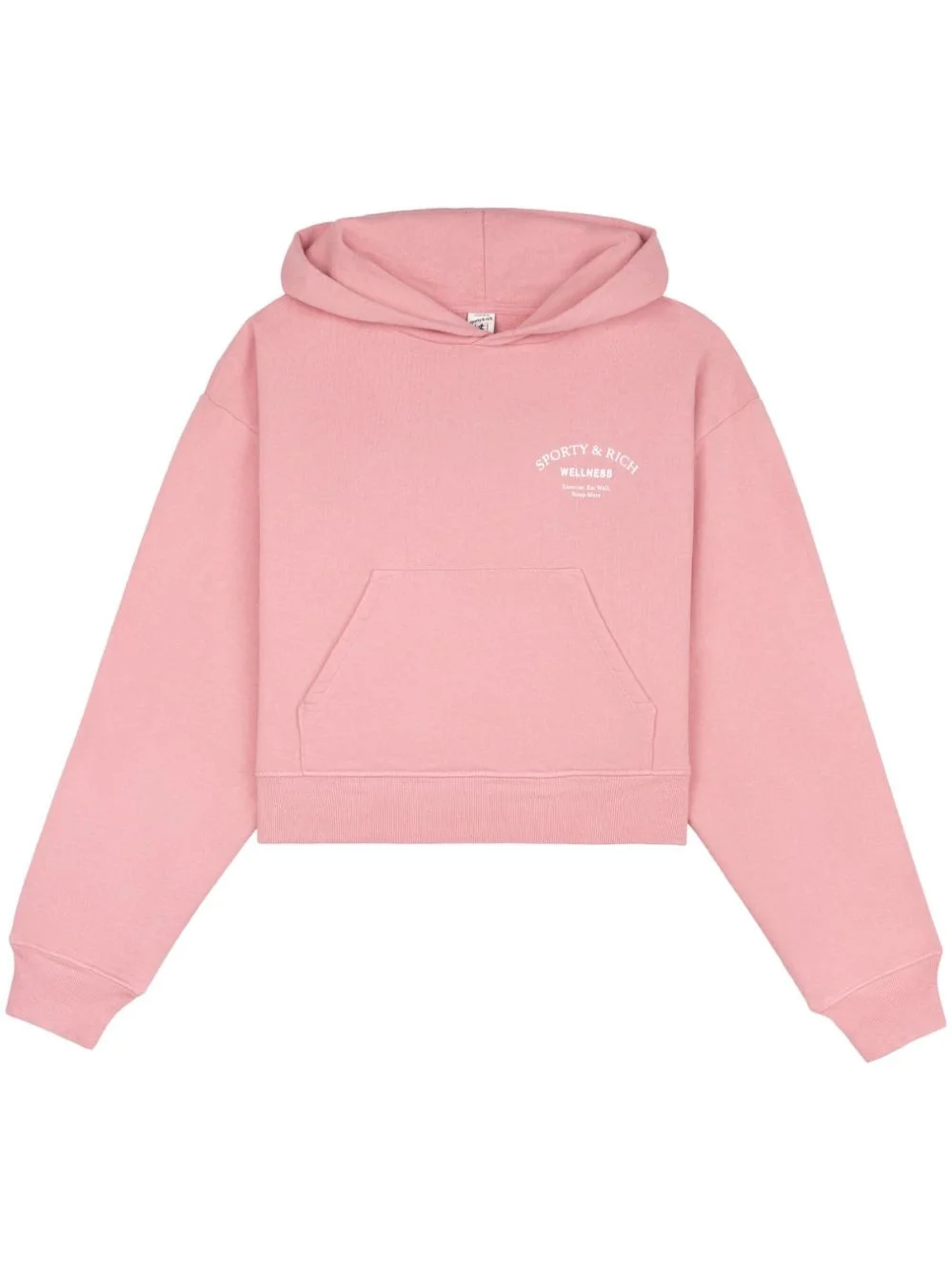 Wellness Studio cropped hoodie Highlights - Rose pink - Cotton - Logo print at the chest - Classic hood - Long sleeves - Ribbed cuffs and hem - Front pouch pocket Made in United States Composition Cotton 100%