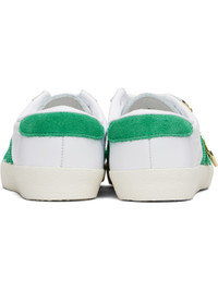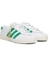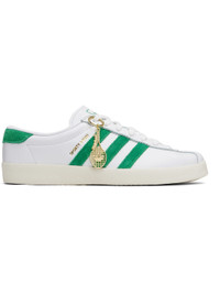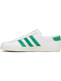 Low-top buffed leather and suede sneakers. · Serrated edges throughout · Lace-up closure · Logo printed at tongue · Padded collar · Signature stripes at sides · Logo stamp at outer side · Treaded rubber sole Part of the Sporty & Rich x adidas Originals collaboration. Supplier color: Cloud white/Off white/Court green Upper: leather. Sole: rubber. Made in Viet Nam 252446F128001