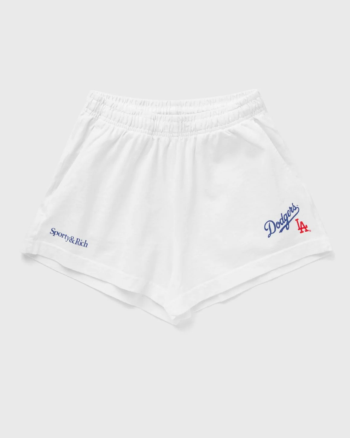 These super short, heavy jersey shorts from Sporty & Rich have an elasticated waistband, two side pockets and a back pocket. Logo prints on both trouser legs complete the design. - Elasticated waistband - Pre-shrunk - Side pockets - Made in Portugal Article Number: SH037627666WH01 Gender: Women Color: white Material: 100% Cotton