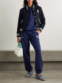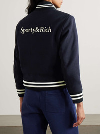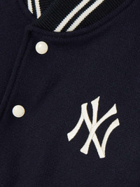 Part of Sporty & Rich's collection with '47 & The New York Yankees, this varsity jacket is inspired by vintage styles worn by players. It's cut from wool-blend, embroidered with the baseball team's unmistakable logo at the chest and finished with neat striped ribbed trims. Size & Fit - Fits true to size, take your normal size - Designed for a slightly loose fit - Ribbed hem - Weighted, non-stretchy fabric - Model is 175cm/ 5'9" and is wearing a size Small Model measurements: - Bust: 81cm/ 32" - Waist: 64cm/ 25" - Hip: 89cm/ 35" Details & Care - Navy and white wool-blend - Snap fastenings through front - 80% wool, 20% polyester; lining: 50% viscose, 50% polyester - Dry clean