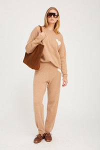 SPRWMN's heart logo sweatshirt, now made in ultra-soft, luxurious Mongolian yarn. Subtly printed with our iconic heart logo, this cashmere crewneck is designed for a relaxed fit creating the perfect balance between casual and chic. Complete the look with our signature heart sweatpants. COLOR: Almondine, White Heart FIT & MEASUREMENTS - Fits true to size - Emma is 5'10" & wears size Small PRODUCT DETAILS - 100% Cashmere - Sustainably grown, organic yarn - Heart logo - Crewneck - Dry clean only