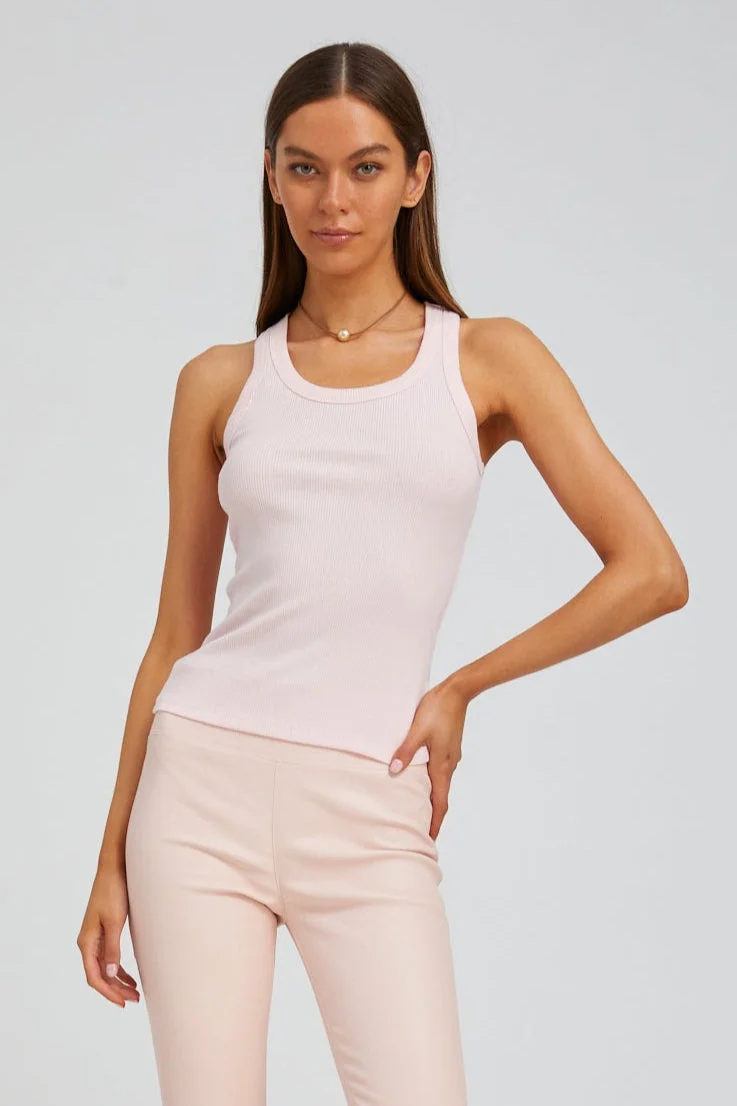Made in our signature, soft ribbed fabric with resilient stretch, this naturally slimming scooped tank maintains its shape making it an everlasting wardrobe essential. Cut with a classic scoop neckline with thick straps and a racer back, it's fitted silhouette makes it versatile for day to night wear. COLOR: Ballet FIT & MEASUREMENTS - Fits true to size - Designed for a slightly snug fit - Emma is 5'10 & wears size Small PRODUCT DETAILS - 98% Tencel, 2% Spandex - Small vertical ridges for a slimming effect - Machine wash cold, tumble dry low