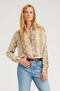 BEIGE SNAKESKIN SILK FITTED BUTTON DOWN
