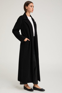 A timeless wardrobe staple, our classic coat is cut for a luxurious, oversized fit. Made from our ultra-soft Mongolian yarn and finished with a single-breasted closure, notched collar and lined in smooth silk. COLOR: Black FIT & MEASUREMENTS - Oversized fit - size down if a closer fit is preferred - Anna is 5'11 & wears size Small PRODUCT DETAILS - 100% Cashmere - Silk lined - Notched collar - Single button front closure - Mid length hem - 2 functional side pockets - Dry clean only