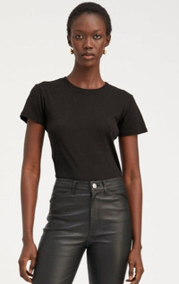 Our classic baby tee. Cut from ultra soft cotton-jersey, this closet essential has an easy crew neckline and is designed for a slightly loose fit for the perfect everyday go-to. With endless styling options, wear with anything from your favorite sweats, to jeans to leather trousers — the options are endless. COLOR:Black FIT & MEASUREMENTS - Fits true to size - Adama is 5'11 & wears size Small PRODUCT DETAILS - 100% Cotton - Machine wash cold, tumble dry low