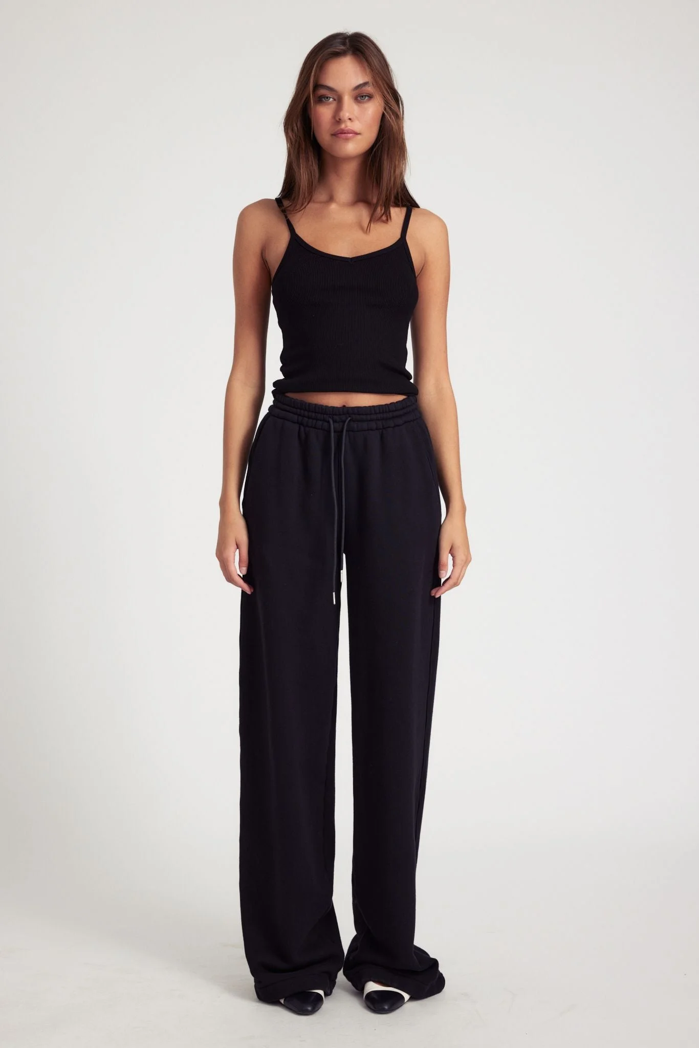 Your new favorite sweatpants, made in an extremely soft and heavyweight cotton for an effortless look. These relaxed pants are made for ultimate comfort and are perfect for all day wear. Featuring an adjustable drawstring at the waistband for easy, pull-on wear. COLOR: Black FIT & MEASUREMENTS - Fits true to size - Relaxed fit - 32.5" inseam, 11.5" rise, 11.5" leg opening - Kiana is 5'11 & wears size Small PRODUCT DETAILS - 100% Cotton - Pull-on fit - Adjustable waistband - Machine wash cold, tumble dry low