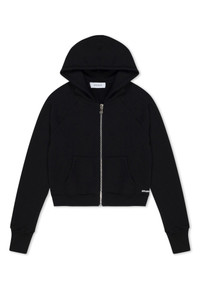 BLACK COTTON SHRUNKEN ZIP UP HOODIE