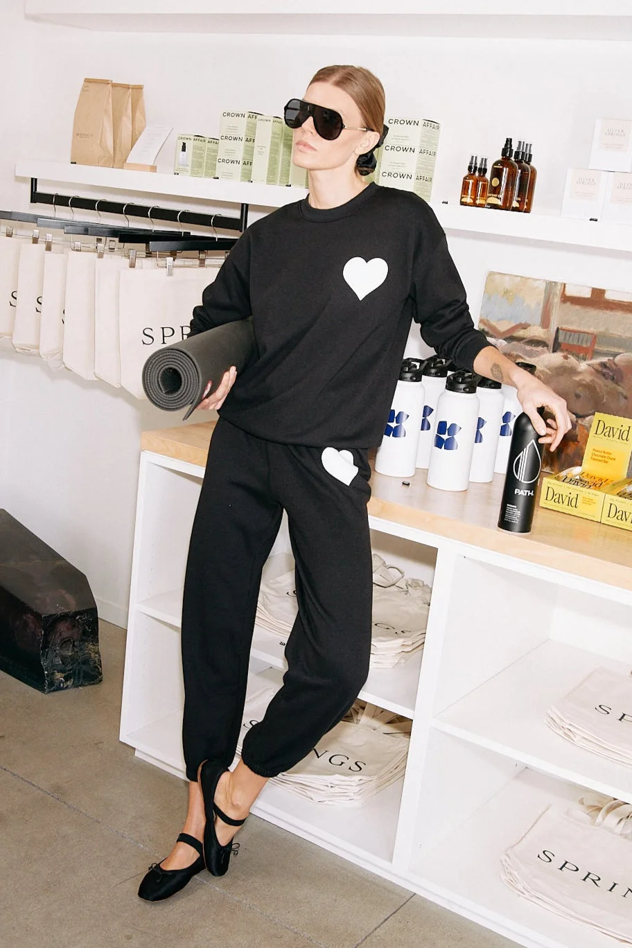 Back by popular demand is our signature heart joggers; an easy pull-on style, subtly printed with our heart logo. Renowned for their extremely soft, yet lightweight fabric, these sweatpants feature a cozy and effortless feel. For the perfect outfit, complete the look with a matching sweatshirt. COLOR:Black, White Heart FIT & MEASUREMENTS - Fits true to size - 29" inseam, 13" rise, 9" leg opening - Model wears a size small PRODUCT DETAILS - 50% Polyester, 38% Cotton, 12% Rayon - Machine wash cold, tumble dry low - Due to the soft nature of the fabric, slight pilling may occur
