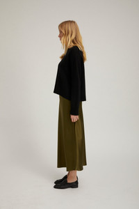 This luxe cashmere crewneck has a relaxed fit for the most elegant drape. Made from our high quality Mongolian yarn, this thick, double-weight fabric is ultra-soft and will keep you warm no matter what. With roomy shoulders and a hem that hits below your natural waist, it's the go-to sweater for both, casual and dressy looks. COLOR:Black FIT & MEASUREMENTS - Fits true to size - Cropped fit - The model is 5'11 & wears a size small PRODUCT DETAILS - 100% Cashmere - 3 gg - Sustainably grown, organic yarn - Dry clean only