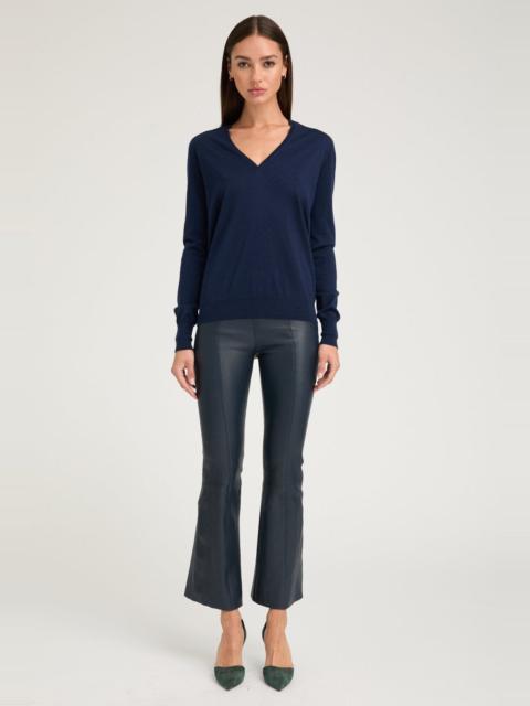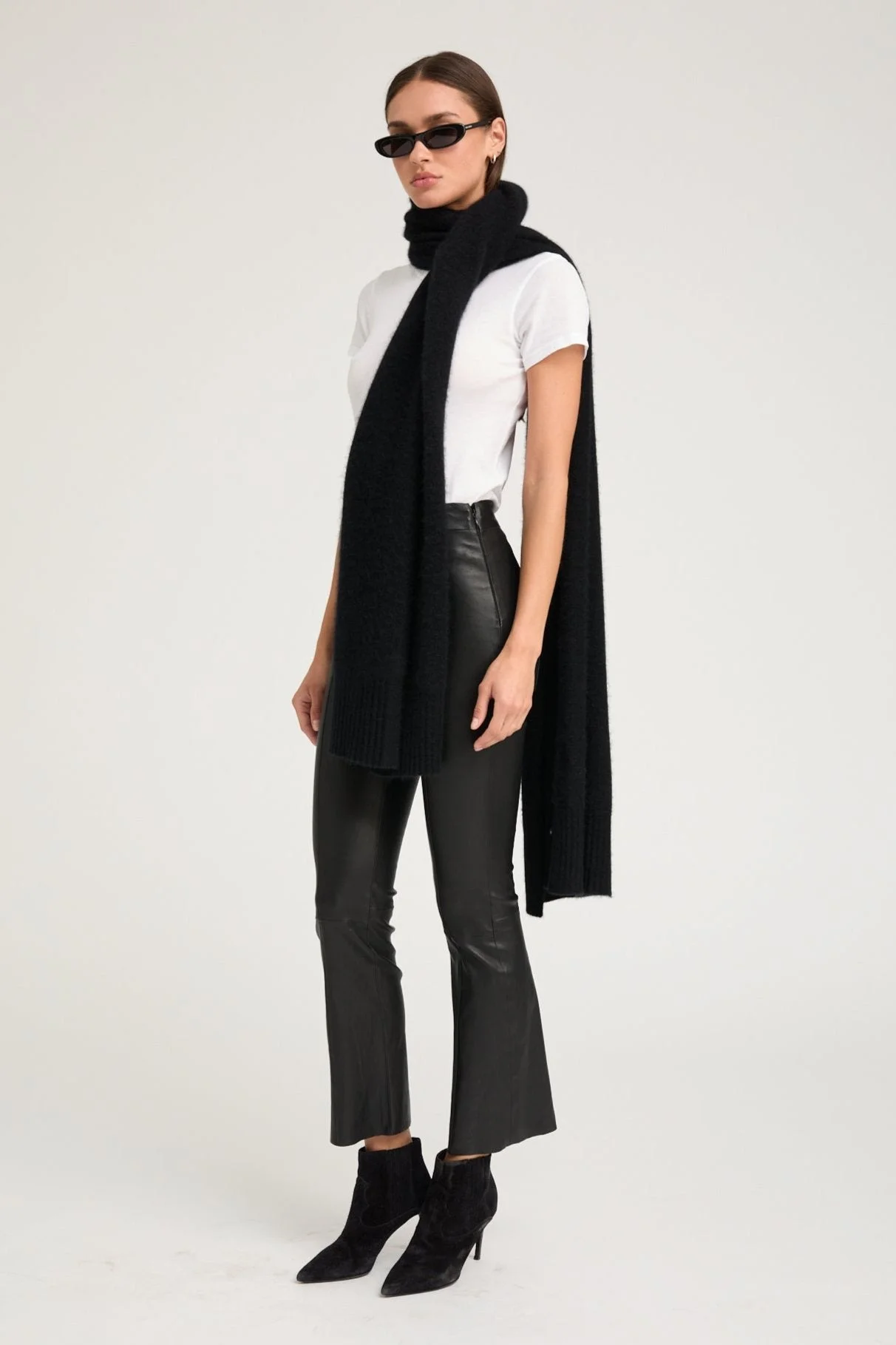 Made in our signature stretchy plonge leather, our Ankle Flare Pants with Princess Seams are buttery soft and feel like a second-skin. These pants feature a high rise and slim fit that flare subtly at the ankle, with princess seams down the front and back for an ultra slimming and elongated look. Wear them with loafers and a cashmere sweater, or dress them up with heels. COLOR:Black FIT & MEASUREMENTS - Fits true to size - Black leather naturally stretches 1/4-1/2 size. To maintain a fitted look, or if in-between sizes, we recommend sizing down. Meant to fit tight at first-try. - High-rise, skinny fit - 28.5" inseam - Kiana is 5'11 & wears size Small PRODUCT DETAILS - 100% French Lambskin - Stretch Leather - Cotton-Lycra lining - Elastic waistband, pull-on fit - Eco friendly, hypoallergenic and chrome-free vegetal dyed - Leather specialist clean only