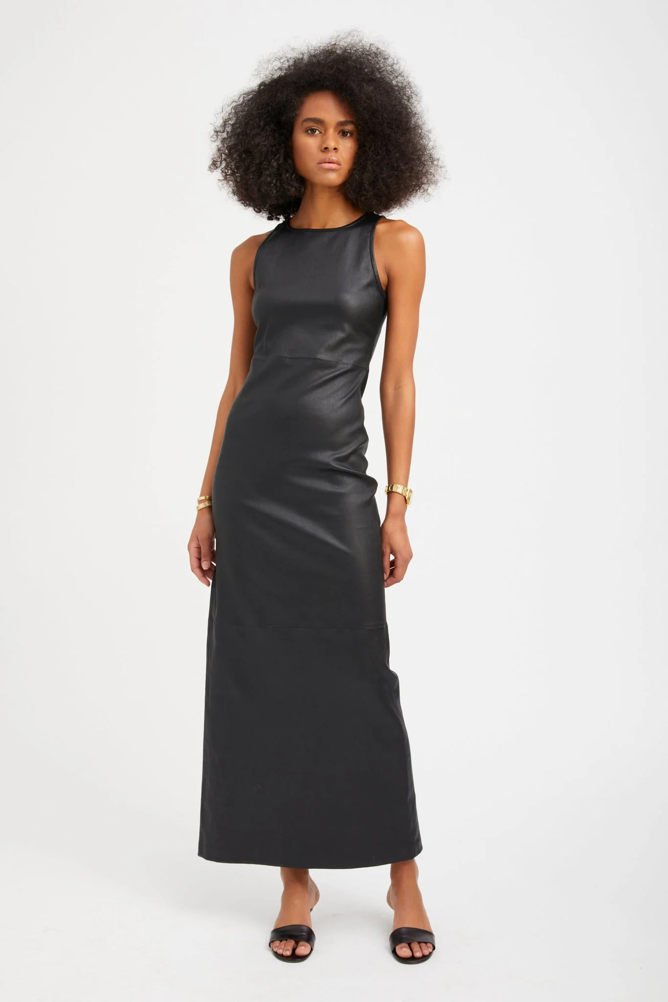 Made in our signature stretchy, French plonge leather, our Audrey maxi dress features a high neck and maxi length silhouette for a timeless and elegant look. This dress feels like a second skin on while allowing breathability for year-round wear due to the cotton, spandex lining – a property exclusive to SPRWMN. Wear this dress as a statement on it's own or layer it under a leather trench for an ultra chic look. COLOR: Black FIT & MEASUREMENTS - Fits true to size - Meant to fit tight at first-try – leather naturally gives; if in between sizes, size down - 57" length - Mika wears size Small PRODUCT DETAILS - 100% French Lambskin - Stretch Leather - Cotton-Lycra lining - Eco friendly, hypoallergenic and chrome-free vegetal dyed - Hand-tailored for a figure-sculpting fit - Concealed back zipper - Vented back - Leather specialist clean only