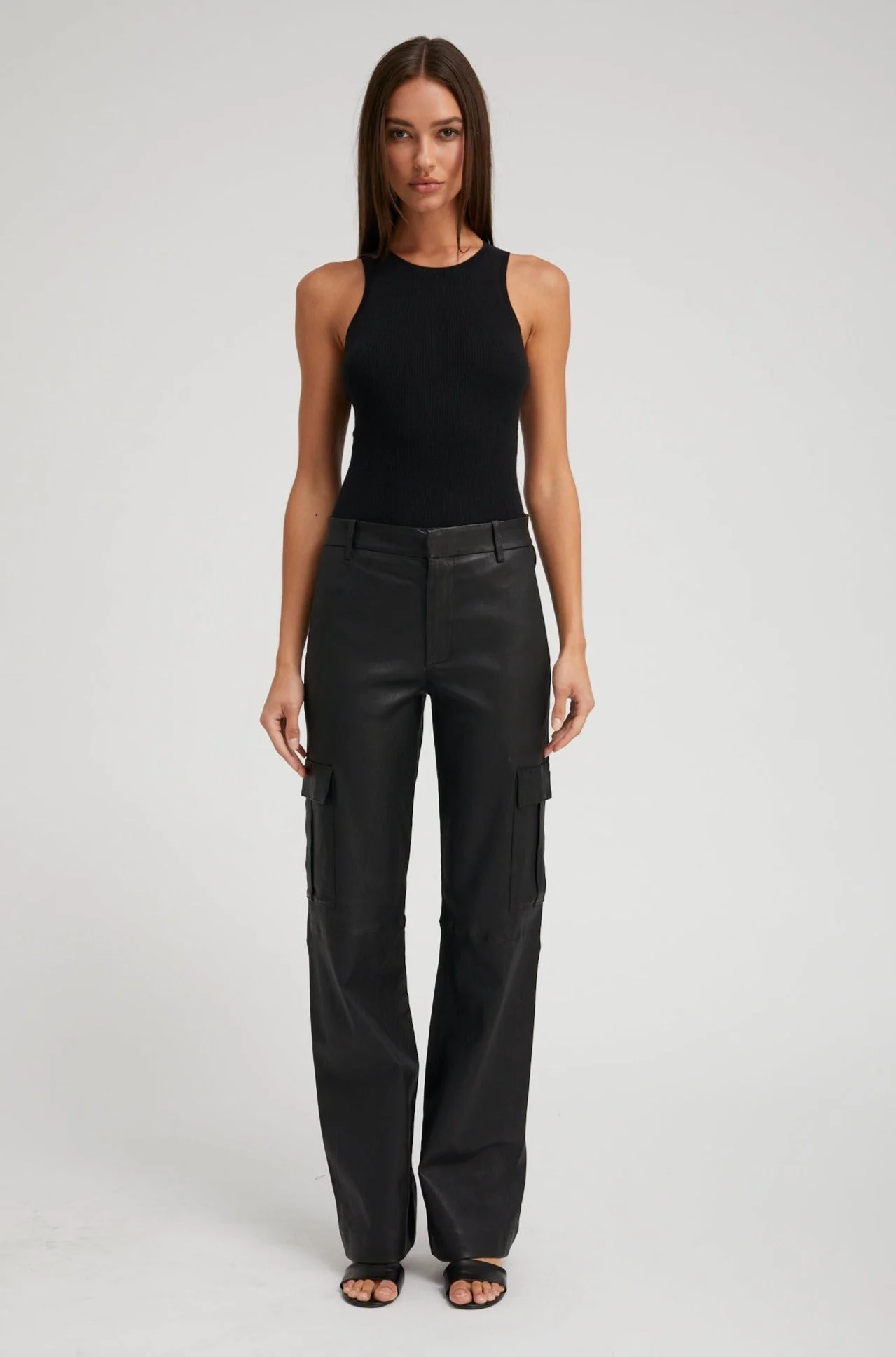 An edgy take on our classic trouser, these cargo pants are made in our buttery-soft, stretch-leather. Get ready for an effortlessly chic and easy to wear relaxed-fit that sits below the waist; featuring side cargo pockets for an updated workwear look, and concealed zip for a sleek and timeless finish. With a wide range of styling options, wear these casually with loafers and a cashmere sweater, or dressed up with heels and turtleneck. COLOR:Black FIT & MEASUREMENTS - Fits true to size; Relaxed Fit - Our lambskin gives naturally over time; if in-between sizes, size down - Low Rise - 33.5" inseam, 11" rise, 9.5" leg opening - Kiana is 5'11" & wears size Small PRODUCT DETAILS - 100% French Lambskin - Stretch Leather - Cotton-Lycra lining - Eco friendly, hypoallergenic and chrome-free vegetal dyed - Functional pockets - Button front, zipper fly - Leather specialist clean only