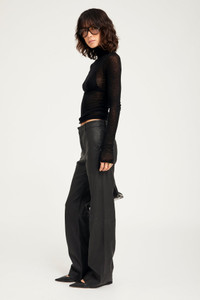 Knitted from our ultra-soft Mongolian yarn, this lightweight long sleeve essential is made from our featherweight Tissue Cashmere, which enhances its elegant drape and flattering silhouette. Designed with playful lettuce hemlines, this vertical ribbed mock-neck has just the right amount of stretch, and is slightly fitted for a slimming look. With a wide range of styling options, this top tucks seamlessly into all of your high waisted bottoms making it the perfect layering piece to pair with your favorite SPRWMN jeans or trousers. COLOR: Black FIT & MEASUREMENTS - Fits true to size - Emma is 5'10" & wears size Small PRODUCT DETAILS - 100% Cashmere - Sustainably grown, organic yarn - Ultra lightweight - Room for layering - Dry clean only