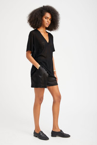 Knitted from our ultra-soft Mongolian yarn, the v-neck tee is made from our featherweight Tissue Cashmere, which enhances its elegant drape and flattering silhouette. Featuring an oversized fit, this everyday tee can be worn on its own or layered with - making it the ultimate transitional piece for any season. COLOR: Black FIT & MEASUREMENTS - Oversized fit - Mika wears size Small PRODUCT DETAILS - 100% Cashmere - Sustainably grown, organic yarn - V-neckline - Ultra lightweight - Room for layering - Dry clean only