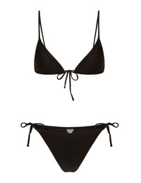 SPRWMN's classic triangle bikini top, designed from our body-sculpting matte swim fabric for an ultra-flattering look and feel. Fully lined for just the right amount of coverage, this is the bikini you'll be reaching for all summer. Pair with the tie bikini bottom for the perfect set. COLOR: Black FIT & MEASUREMENTS - Fits true to size PRODUCT DETAILS - 80% Nylon, 20% Elastane - Double lined with self fabric - Fixed shoulder straps that can be tied at the neck - Back strap ties - Hand wash cold, hang dry