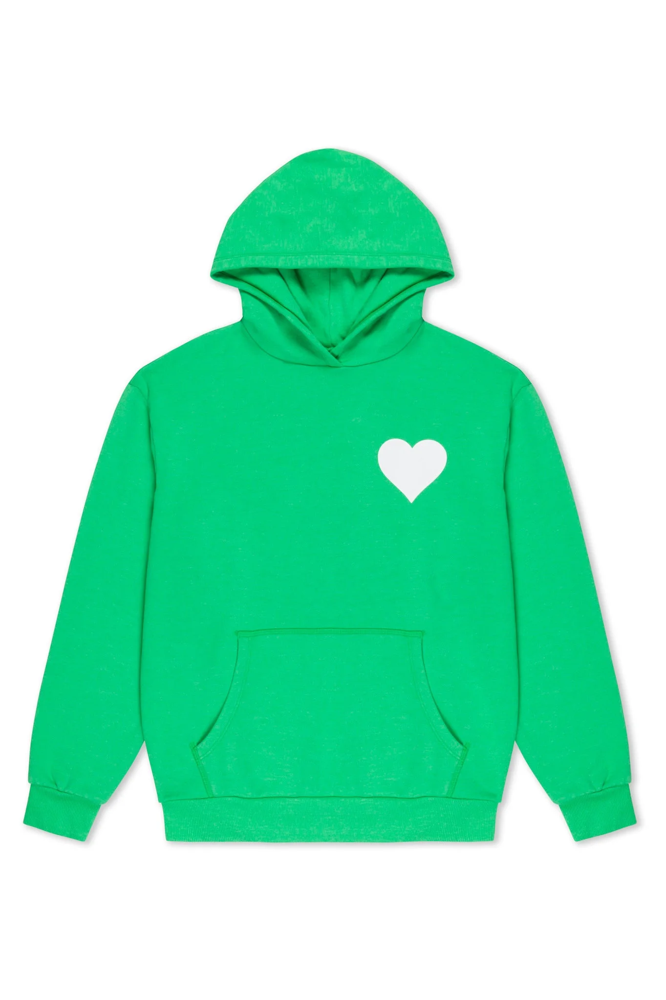 A cult favorite designed for a relaxed fit, made from a blend of plush cotton-fleece for an ultra-soft feel, with the perfect stretch and wearability. This classic hoodie is printed with our signature heart logo and hosts a kangaroo pocket for a chic, yet casual look, to enjoy any season. For the full look, wear with the matching heart sweatpants. COLOR: Bright Green, White Heart FIT & MEASUREMENTS - Oversized fit PRODUCT DETAILS - 50% Polyester, 38% Cotton, 12% Rayon - Kangaroo pocket - Due to the soft nature of the fabric, slight pilling may occur - For first wash, machine wash cold by itself - Machine wash cold, tumble dry low