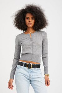 Knitted from our ultra-soft Mongolian yarn, the baby cardigan is made from our lightweight Cashmere and is designed to be fitted for a slimming look. This sweater can be worn on its own or layered over a tank, making it the perfect everyday go-to and the ultimate transitional piece for any season. COLOR: Grey FIT & MEASUREMENTS - Fits true to size - 20" length, 26" sleeve - Designed for a fitted look - Mika wears size Small PRODUCT DETAILS - 100% Cashmere - Sustainably grown, organic yarn - 7 front button closure - Dry clean only