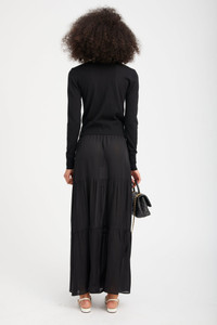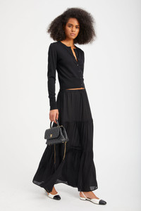 Knitted from our ultra-soft Mongolian yarn, the baby cardigan is made from our lightweight Cashmere and is designed to be fitted for a slimming look. This sweater can be worn on its own or layered over a tank, making it the perfect everyday go-to and the ultimate transitional piece for any season. COLOR: Black FIT & MEASUREMENTS - Fits true to size - 20" length, 26" sleeve - Designed for a fitted look - Mika wears size Small PRODUCT DETAILS - 100% Cashmere - Sustainably grown, organic yarn - 7 front button closure - Dry clean only
