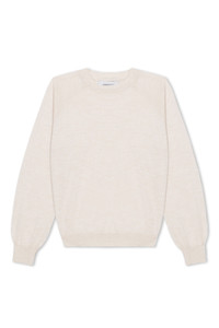 Knitted in our high quality, thin ultra-soft Mongolian Cashmere, this long sleeve raglan sweater will easily become your new favorite go-to. Elegantly designed for everyday wear, this top has just the right amount of stretch and is slightly fitted for a slimming look. With a wide range of styling options, this top tucks seamlessly into all of your high waisted bottoms making it the perfect layering piece to pair with your favorite SPRWMN jeans or trousers. COLOR: Chalk FIT & MEASUREMENTS - Fits true to size PRODUCT DETAILS - 100% Cashmere - Sustainably grown, organic yarn - Lightweight - Room for layering - Dry clean only