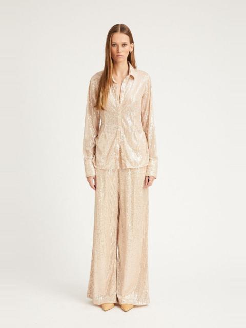 A high-rise wide leg pant, artfully designed with an ultra-flared hem that mimics a trouser but with an easy pull-on fit. Made in our stretchy plonge suede leather, these pants are buttery-soft to touch and extremely lightweight, while maintaining a structured and luxurious look. Designed with tailored pintucks down the front and back to elongate the legs with a cinched waist for a fitted and flattering look, these pants can be worn day to night. COLOR: Charcoal FIT & MEASUREMENTS - Fits true to size - Our lambskin gives naturally over time; if in-between sizes, size down - 32" inseam, 14" leg opening - Kennedy is 5'11" & wears size Small PRODUCT DETAILS - 100% French Lambskin - Stretch Leather - Cotton-Lycra lining - Elastic waistband, pull-on fit - Eco friendly, hypoallergenic and chrome-free vegetal dyed - 2 functional pockets - Leather specialist clean only