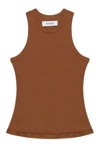 This classic racer back will easily become your go-to tank. Cut in our signature rib-knit fabric for an ultra-soft feel and stretch that will last. The vertical rib combined with a high neckline shape create a naturally slimming look. Throw it on with your favorite jeans or leather leggings for an easy and effortless look. COLOR: Chestnut FIT & MEASUREMENTS - Fits true to size - Designed for a slightly snug fit - Emma is 5'10 & wears size Small PRODUCT DETAILS - 98% Tencel, 2% Spandex - Small vertical ridges for a slimming effect - Machine wash cold, tumble dry low