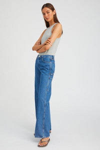 Our Carpenter denim, a mid-rise relaxed fit that is designed to sit comfortably at the hips. Featuring our signature V-back belt loops and faux croc embossed label for a chic detail that accentuates your natural waist and made from 100% Cotton for a classic denim look and feel. This jean features utility pockets and a hammer-loop detail for a vintage work-wear vibe. Wear these casually with a tee and sneakers, or dress them up by adding a blazer and heels. WASH: Coco - Classic Blue FIT & MEASUREMENTS - Oversized fit, size down if in-between sizes or want a tighter fit - Mid-rise - 33" inseam, 11" rise, 20" leg opening - Toma wears size 26 PRODUCT DETAILS - 100% Cotton - Non-Stretch Denim - Japanese Denim - Front zipper & button closure - Machine wash cold, tumble dry low