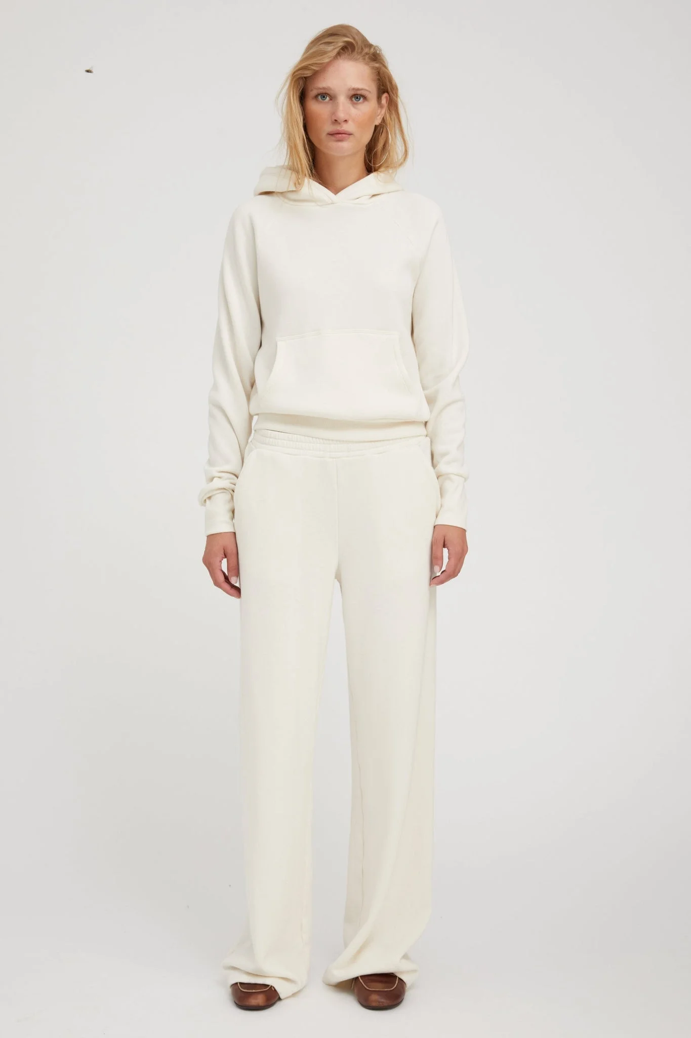 Your new favorite sweatpants, made from a blend of plush cotton-fleece for an ultra-soft feel and effortless look. These relaxed pants are made for ultimate comfort and are perfect for all day wear. Featuring an adjustable drawstring at the waistband for easy, pull-on wear. Pair with one of our matching sweatshirts or classic baby tee. COLOR: Creme FIT & MEASUREMENTS - Relaxed fit - Emma wears size Small PRODUCT DETAILS - 50% Polyester, 38% Cotton, 12% Rayon - Adjustable waistband, pull-on fit - For first wash, machine wash cold by itself - Machine wash cold, tumble dry low - * Due to the soft nature of the fabric, slight pilling may occur