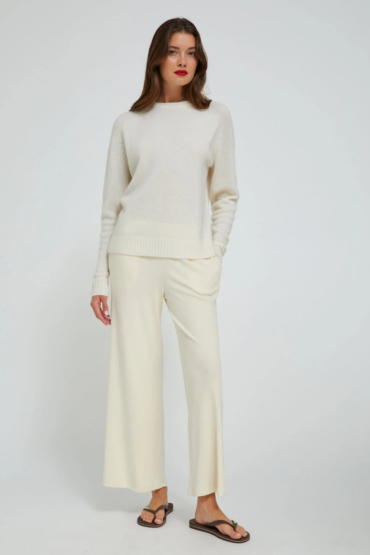 These rib culottes are a must-have lounge favorite. This cropped, wide-leg silhouette features a high-rise elastic waistband that naturally cinches your waistline for a flattering fit that you can wear all day long. Made in our signature, soft ribbed fabric with resilient stretch, you'll fall in love with these pants, as their elegant drape makes them look like a dress pant, but they feel just as cozy as a sweatpant. Pair with our matching rib knit tops for a monochrome look. COLOR: Creme FIT & MEASUREMENTS - Fits true to size - Emma is 5'10 & wears size Small PRODUCT DETAILS - 98% Tencel, 2% Spandex - Small vertical ridges for a slimming effect - High-rise waistband, pull-on fit - 2 functional pockets - Machine wash cold, tumble dry low