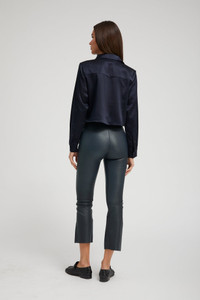 Our signature Crop Flare Leggings, are fitted with a high-rise elastic waistband and subtle kick-flare at the bottom for a figure-sculpting fit. Made in our signature stretchy French plonge leather, they feel like a second-skin due to their extreme breathability – a property exclusive to SPRWMN – making them wearable all year round, and guaranteed to become a wardrobe staple. Style them casually with sneakers and a simple tee, or dress them up with heels and a button down. COLOR: Midnight FIT & MEASUREMENTS - Fits true to size - Meant to fit tight at first-try – leather naturally gives; if in between sizes, size down - High-rise, slim fit - 25" inseam, 8" leg opening, 3 3/8" waistband depth - Anna is 5'11" & wears size Small PRODUCT DETAILS - 100% French Lambskin - Stretch Leather - Cotton-Lycra lining - Elastic waistband, pull-on fit - Eco friendly, hypoallergenic and chrome-free vegetal dyed - Leather specialist clean only