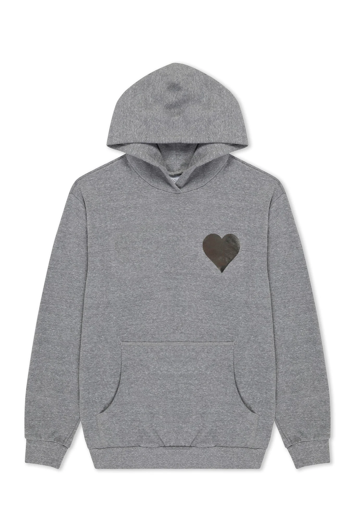 A cult favorite designed for a relaxed fit, made from a blend of plush cotton-fleece for an ultra-soft feel, with the perfect stretch and wearability. This classic hoodie is printed with our signature heart logo and hosts a kangaroo pocket for a chic, yet casual look, to enjoy any season. For the full look, wear with the matching heart sweatpants. COLOR: Dark Grey, Silver Heart FIT & MEASUREMENTS - Oversized fit PRODUCT DETAILS - 50% Polyester, 38% Cotton, 12% Rayon - Kangaroo pocket - For first wash, machine wash cold by itself - Machine wash cold, hang to dry