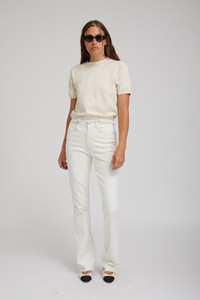 A timeless and versatile silhouette, our signature Micro Flare jeans feature a high rise with a slim fit and a narrow flare that extends past the ankle to elongate the legs. Featuring our signature back V and chic faux-croc embossed label, these pants will quickly become your favorite pair of jeans. Wear them with a turtleneck and heels for a more elevated look, or throw on with a tee and sneakers for a more laid back vibe. COLOR:Earhart - Off White 98% cotton and 2%elastane - Italian denim Fit true to size Inseam 33" Rise 12" Leg opening 18" Machine wash, cold Model wears size 27 PRODUCT DETAILS - 98% cotton and 2%elastane - Italian denim - Fit true to size - Inseam 33" - Rise 12" - Leg opening 18" - Machine wash, cold - Model wears size 27