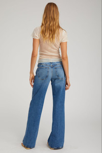 Our Vintage Wide Leg jeans are designed to be snug at the waist and flare out past the hips with dramatic wide legs. Tailored with two back darts, this high-rise fit combined with the wide leg opening offers a sophisticated drape and elongating silhouette, creating a casual look that still accentuates your natural waist. Featuring our signature back V and faux-croc embossed label and made from 100% Cotton for a classic denim look and feel. Wear these with a classic baby tee or cashmere sweater for a relaxed, yet chic, look. WASH: Edith - Medium Blue Stone Wash FIT & MEASUREMENTS - Fits true to size - Mid-rise - Relaxed fit at the waist, hips, and thighs - Wide leg silhouette - 32" inseam, 10.5" rise, 29" leg opening - Maryna is 5'11" & wears size 26 PRODUCT DETAILS - 100% Cotton - Non-Stretch Denim - Japanese Denim - Front zipper & button closure - Machine wash cold, tumble dry low