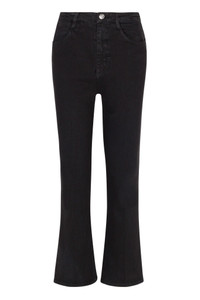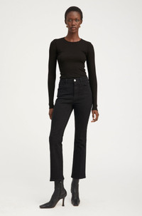 This classic ankle flare style is designed to sit at the natural waist, and flare slightly at the ankle to elongate the leg. Featuring our signature back V and chic faux-croc embossed label, these pants will quickly become your favorite pair of jeans.Style these with a baby tee and boots, or a sweater and sneakers. WASH: Ella - Washed Black FIT & MEASUREMENTS - Fits true to size - 28" inseam,11" rise, 17" leg opening - Adama is 5'11 & wears size 26 PRODUCT DETAILS - 98% Cotton, 2% Elastane - Stretch Denim - Italian Denim - Machine wash cold, tumble dry low - Front zipper & button closure