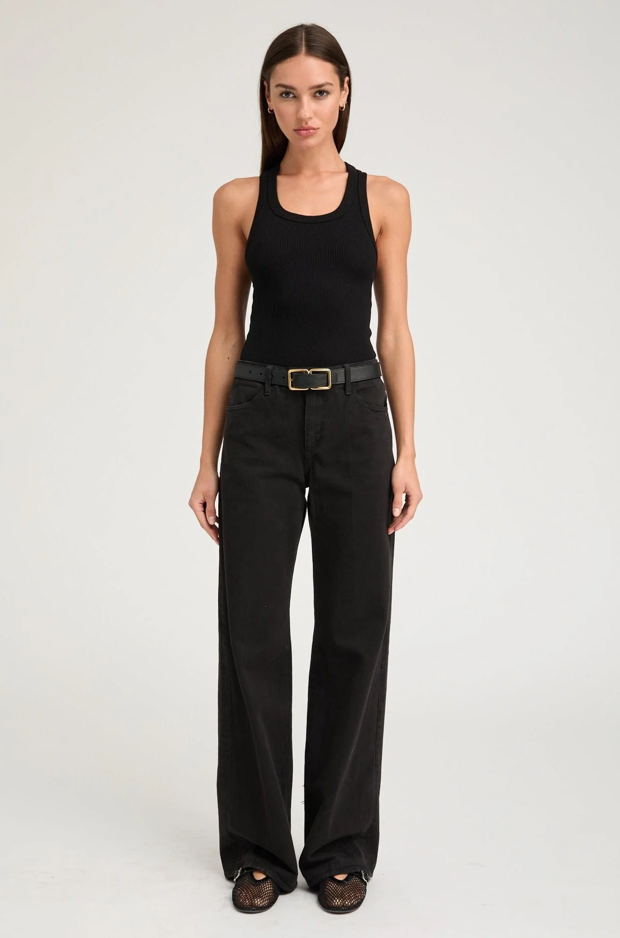 Our Vintage Wide Leg jeans are designed to be snug at the waist and flare out past the hips with dramatic wide legs. Tailored with two back darts, this high-rise fit combined with the wide leg opening offers a sophisticated drape and elongating silhouette, creating a casual look that still accentuates your natural waist. Made from stretch denim that conforms to your body and won't loose it's shape overtime, these pants will quickly become your favorite pair of jeans. Featuring our signature back V and faux-croc embossed label for a flattering detail. Wear these with a tank and leather blazer, or a classic white tee. WASH:Ella - Washed Black FIT & MEASUREMENTS - Runs large - 32" inseam, 10.5" rise, 29" leg opening - Anna is 5'11 & wears size 25 - Adama is 5'11 & wears size 26 PRODUCT DETAILS - 98% Cotton, 2% Elastane - Stretch Denim - Italian Denim - Machine wash cold, tumble dry low - Mid-rise wide leg - Relaxed fit at the waist, hips, and thighs