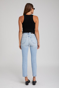 Our Francoise Cropped Slim Straight Leg Jeans sit high on the hips and are cut for a flattering fit that looks tailored yet feels forgiving. Designed from a light washed stretch-denim that gives you the comfort of your boyfriend's jeans while featuring our signature V back detail. Style with a cropped sweater or a sharp blazer and a bodysuit. COLOR:Light wash DETAILS: 98% Cotton, 2% Elastane Fit true to size High rise Model wears size 25