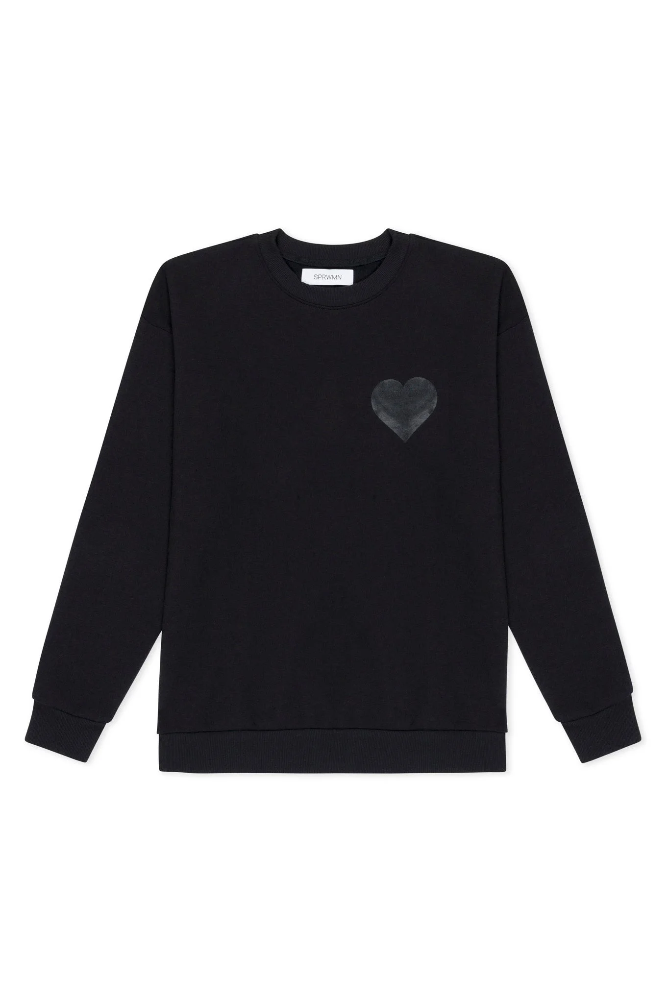 SPRWMN's heart logo sweatshirt is made from our signature cotton-fleece blend, renowned for its luxuriously-soft, yet lightweight feel. Subtly printed with our iconic heart logo, this crewneck is designed for a relaxed fit creating the perfect balance between casual and chic. Complete the look with our signature heart sweatpants. COLOR: Black, Glossy Black Heart FIT & MEASUREMENTS - Fits true to size PRODUCT DETAILS - 50% Polyester, 38% Cotton, 12% Rayon - Heart logo - For first wash, machine wash cold by itself - Machine wash cold, tumble dry low - * Due to the soft nature of the fabric, slight pilling may occur