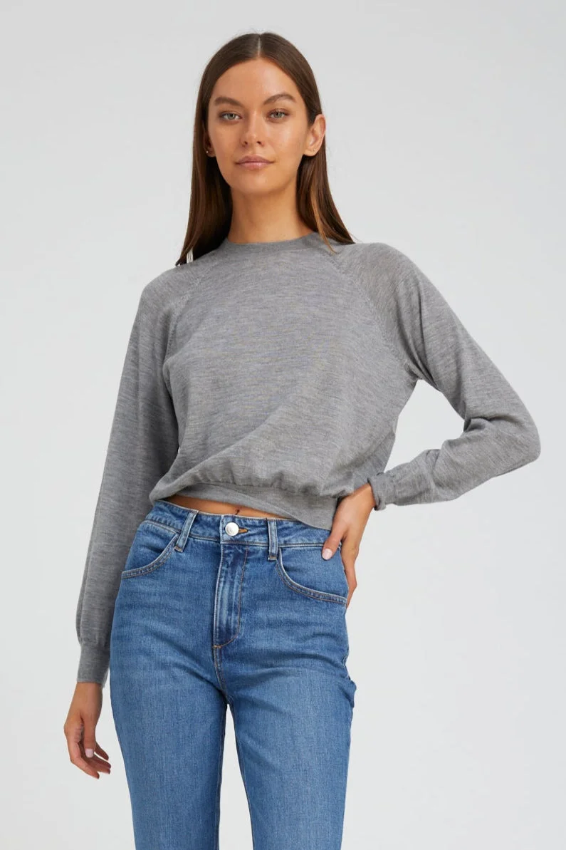 GREY CASHMERE LONG SLEEVE RAGLAN SWEATER