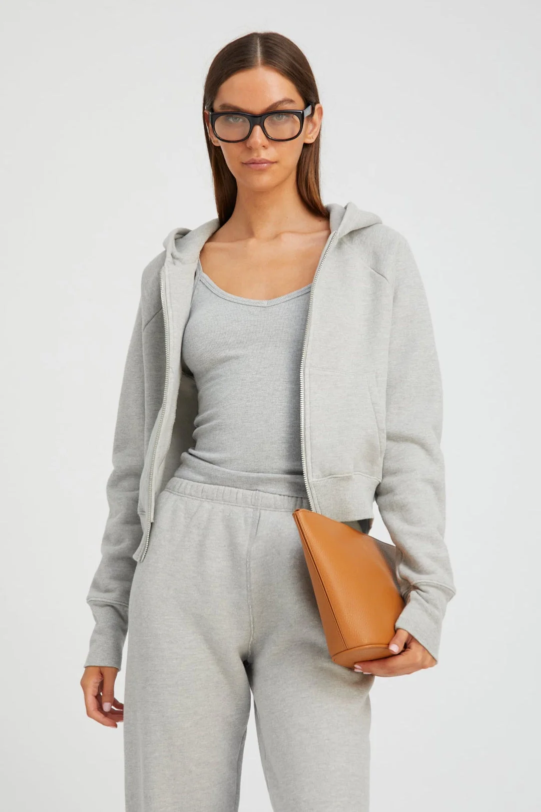HEATHER GREY COTTON SHRUNKEN ZIP UP HOODIE