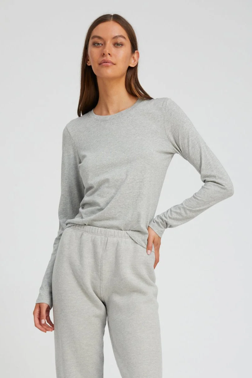 Our classic baby tee, but with long sleeves. Cut from ultra soft cotton-jersey, this closet essential has an easy crew neckline and is designed for a slightly loose fit for the perfect everyday go-to. With endless styling options, wear with anything from your favorite sweats, to jeans to leather trousers — the options are endless. COLOR: Heather Grey PRODUCT DETAILS - 90% Cotton 10% Polyester - Long sleeve, classic fit - Machine wash cold, tumble dry low