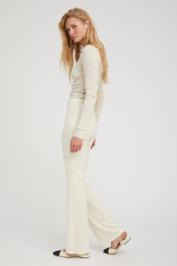 Knitted in our high quality, thin ribbed ultra-soft Mongolian Cashmere, this long sleeve baby tee will easily become your new favorite go-to. Elegantly designed for everyday wear, this top has just the right amount of stretch and is slightly fitted for a slimming look. With a wide range of styling options, this top tucks seamlessly into all of your high waisted bottoms making it the perfect layering piece to pair with your favorite SPRWMN jeans or trousers. COLOR: Ivory FIT & MEASUREMENTS - Fits true to size - Emma is 5'10 & wears size Small PRODUCT DETAILS - 100% Cashmere - Sustainably grown, organic yarn - Dry clean only