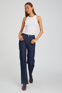 Designed with a modern loose fit, our Loose Straight jeans are cut to elongate the legs and give you flattering, comfortable silhouette no matter the mood or occasion. Made from 100% Cotton for a classic denim look and feel, these jeans feature our signature V-back belt loops and faux croc embossed label for a chic detail that accentuates your natural waist. Perfect for a statement heel, platform or chunky sneaker, these jeans are extremely versatile. WASH: Jane - Ultra Dark Rinse FIT & MEASUREMENTS - Fits true to size - 33" inseam, 10.5" rise, 9" leg opening - Kiana is 5'11 & wears size 26 PRODUCT DETAILS - 100% Cotton - Non-Stretch Denim - Japanese Denim - Machine wash cold, tumble dry low - Front zipper & button closure