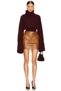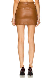 - 100% lamb leather - Made in USA - Professional leather clean only - Unlined - Zip fly with hook and bar closure.4-pocket design - Smooth leather fabric - Skirt measures approx 15" in length - Revolve Style No. SPRR-WQ31 - Manufacturer Style No. SKT039L