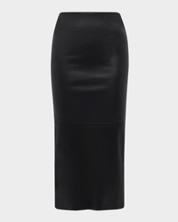 - SPRWMN "Tube" slimming and sleek skirt in smooth goatskin leather - High-rise waistband - Vented back - Hem falls below the knee - Skirt falls straight from hip to hem - Pull-on style - Leather - Imported - Model is 5'10"/177cm.