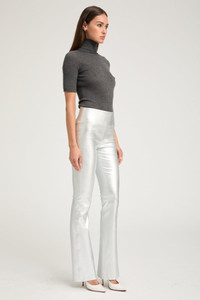 Our classic Micro Flare Leather Pant will quickly become an essential, and fun, part of your wardrobe. Featuring a tight fit from waist to mid-calf that flares out slightly past the ankle for an elongating look, these are perfect for those who want a slimming and comfortable fit with some added flare. Made from our stretchy French plonge leather, these pants feel like a second-skin with their extreme breathability – a property exclusive to SPRWMN – and can be worn year-round. COLOR: Metallic Silver FIT & MEASUREMENTS - Fits true to size - Meant to fit tight at first-try – leather naturally gives; if in between sizes, size down - High-rise, slim fit - 34" inseam, 8.7" leg opening, 10.5" rise, 3 3/8" waistband depth - Anna is 5'11 & wears size Small PRODUCT DETAILS - 100% French Lambskin - Stretch Leather - Cotton-Lycra lining - Elastic waistband, pull-on fit - Eco friendly, hypoallergenic and chrome-free vegetal dyed - Leather specialist clean only