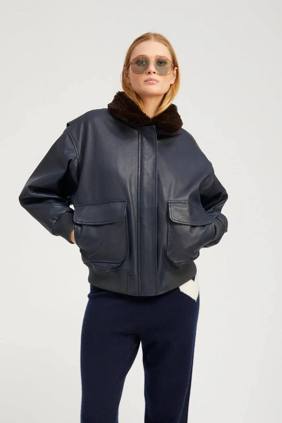 MIDNIGHT LEATHER VINTAGE AVIATOR JACKET
