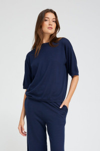 NAVY CASHMERE BOXY TEE